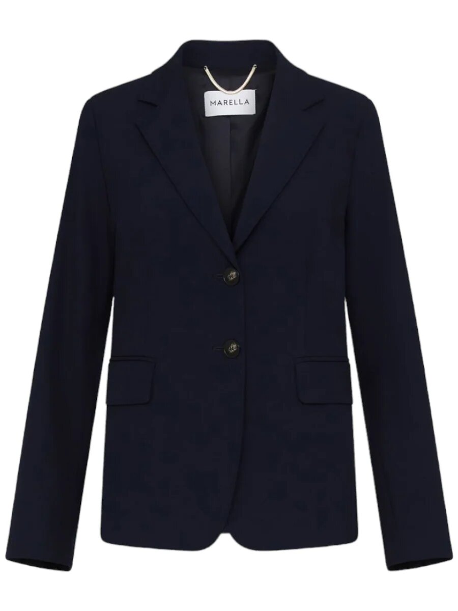 Blazer in tessuto leggermente stretch, linea semiaderente. Collo a rever, maniche lunghe. Chiusura a monopetto con bottoni a vista, tasche con patta. Foderato.