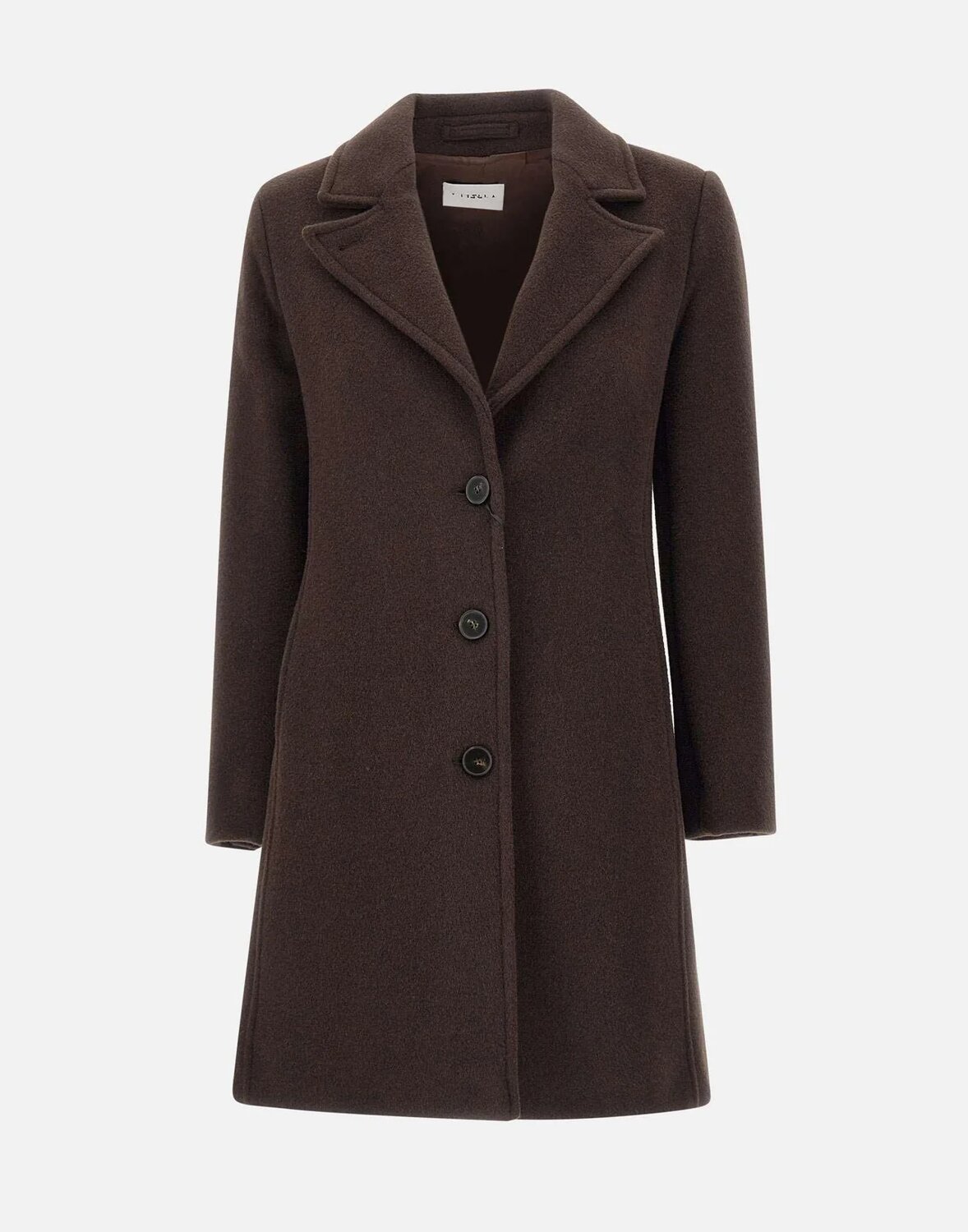Cappotto “Angel” Marella, cioccolato, tessuto misto lana, rever a lancia, chiusura con maxi bottoni in tinta, leggermente aderente in vita, foderato, tasche laterali a filo, spacco centrale posteriore, regular fit