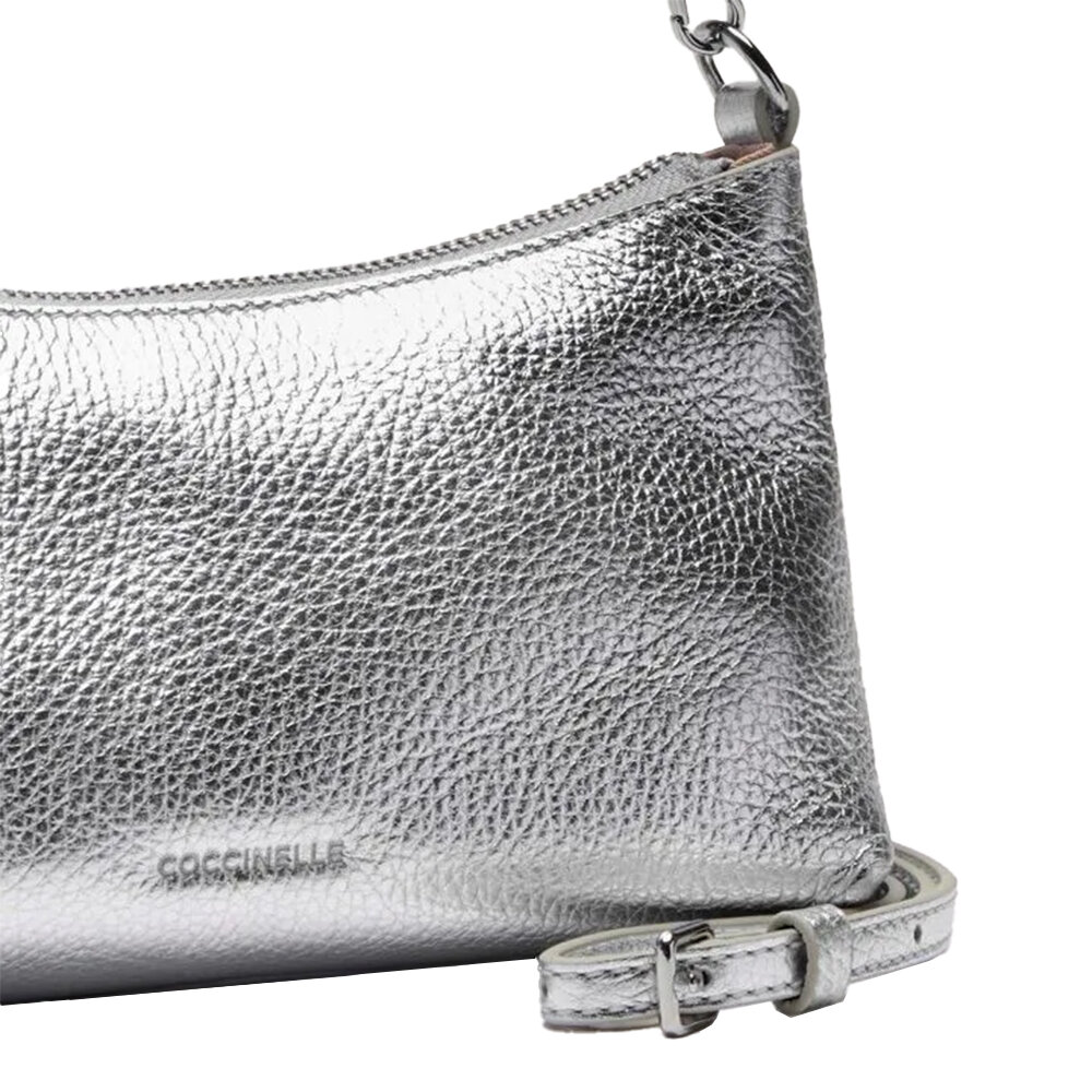 La borsa Aura di Coccinelle è pensata per accompagnarti tutti i giorni grazie alla comoda tracolla in pelle, mentre il manico in catena, la rende perfetta anche per un look da sera.