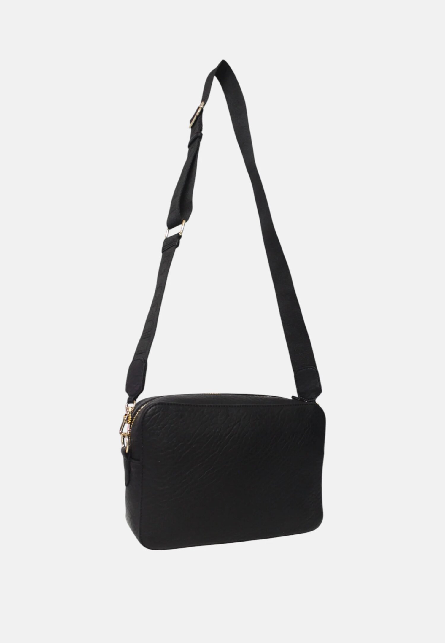 Borsa a tracolla da donna in ecopelle con logo frontale, tracolla regolabile e removibile, chiusura centrale con zip ed interni foderati con la presenza di 2 tasche multiuso.