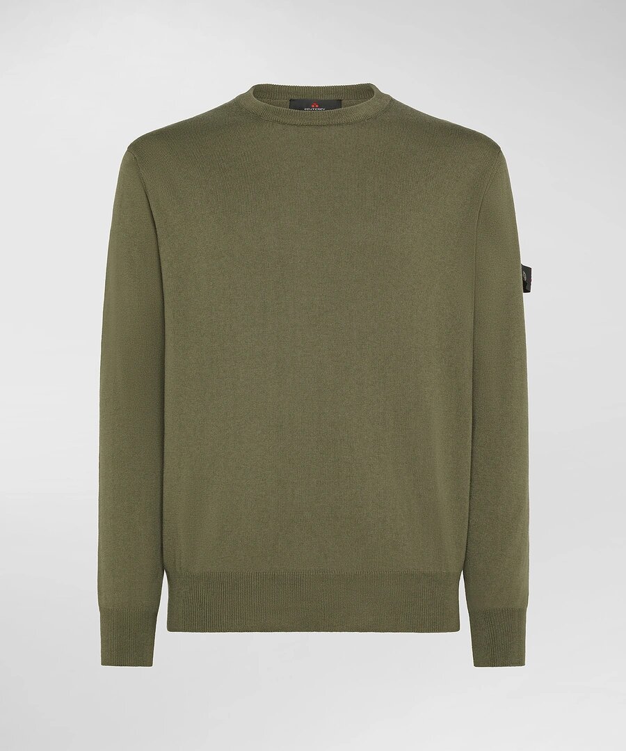 Maglione girocollo in tricot misto lana e cotone, dalla texture morbida e compatta. Il design essenziale è valorizzato da dettagli raffinati come il collo, i polsini e il fondo lavorati a coste. Sul braccio sinistro è applicata con due delicati bottoncini la personalizzazione con logo Peuterey trilogy, simbolo iconico del brand. Modello tinta unita disponibile in vari colori. Un capo versatile che si adatta con naturalezza a look casual come a combinazioni più ricercate, perfetto per definire uno stile contemporaneo e disinvolto.