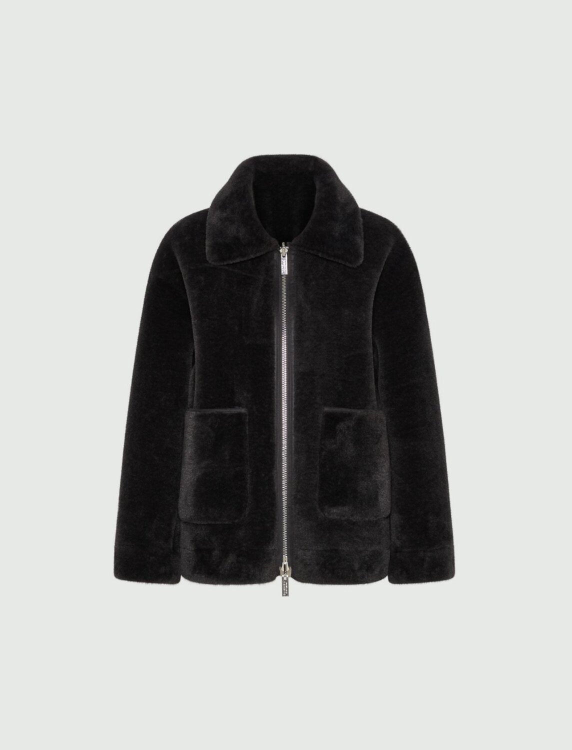 Giacca in jersey dal finish vellutato su un lato e tessuto effetto furry dall’altro