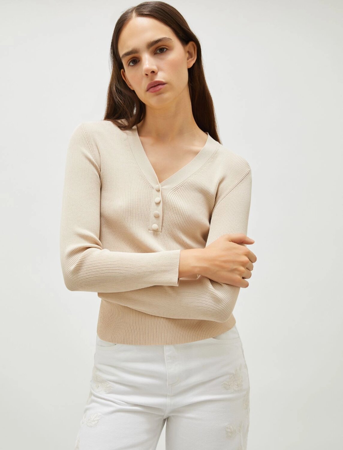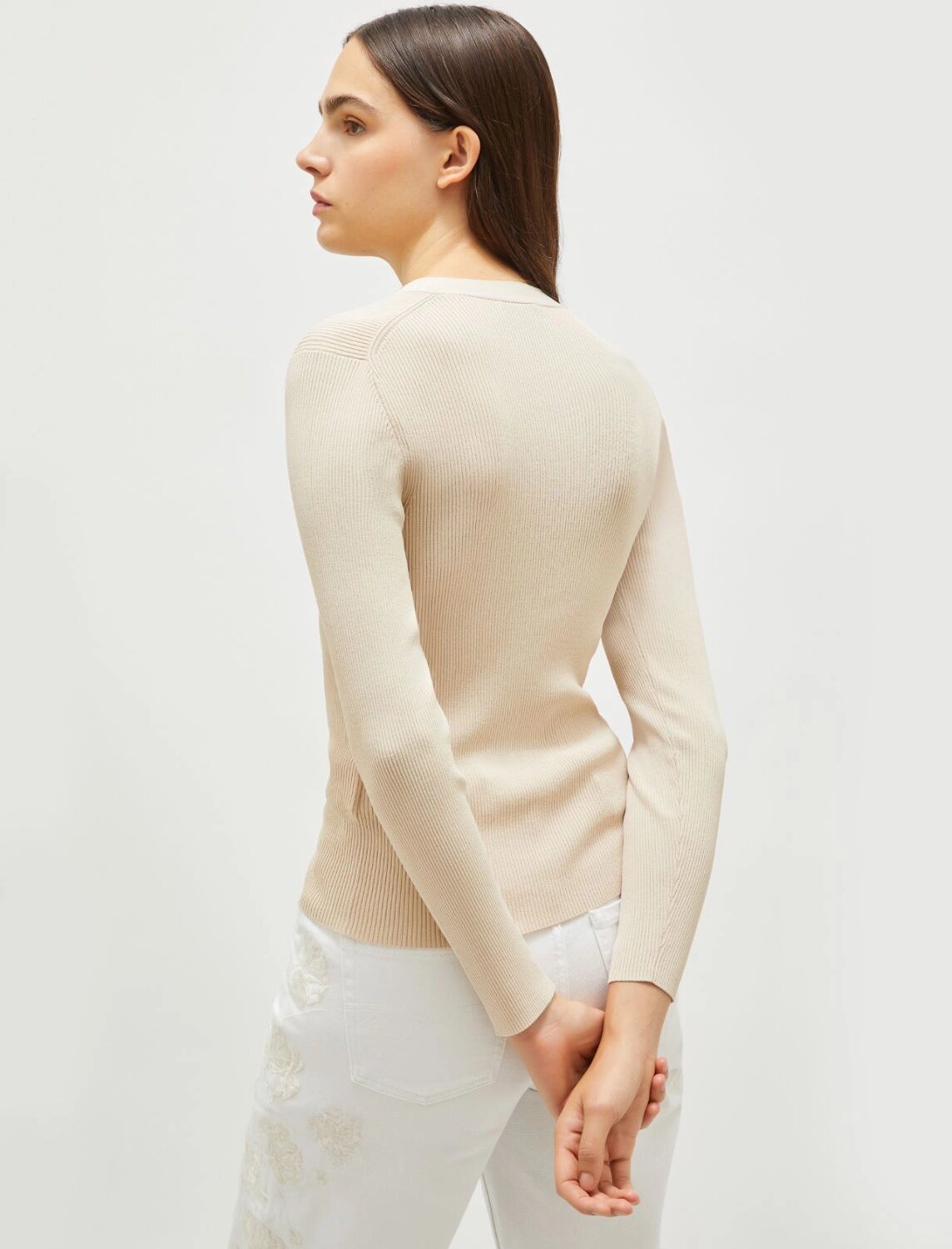 Come una seconda pelle, colorata e cool, questa maglia aderente accende ogni look con le sue nuance primaverili. Perfetta sotto un blazer o sotto un cardigan, si indossa con versatilità sui pants slim di collezione.
