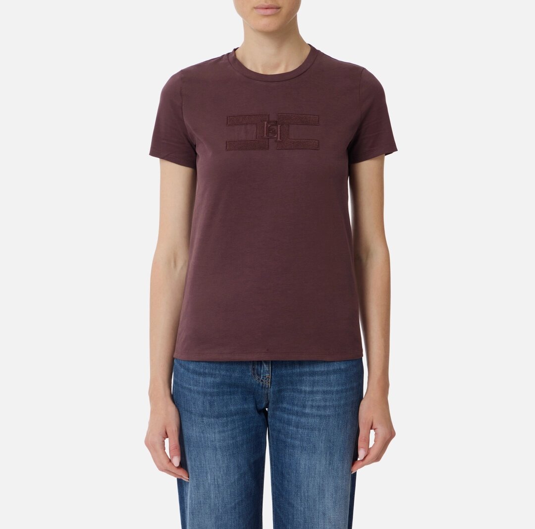 Maglietta a maniche corte in jersey di cotone. Si distingue per il doppio logo ricamato a rilievo sul davanti, in tono per un raffinato equilibrio cromatico. Vestibilità slim.
