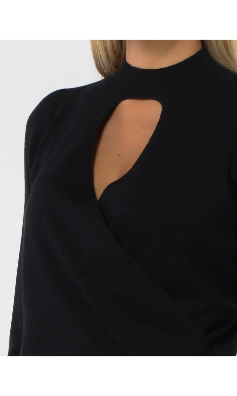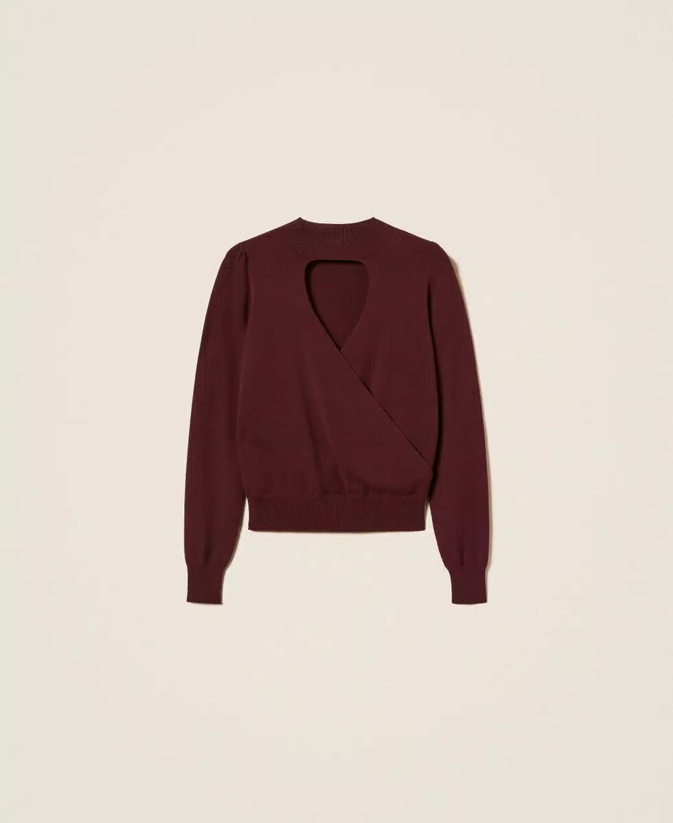 Maglia in viscosa stretch con incrocio davanti che crea un motivo cut-out. Ha collo in stile lupetto, maniche lunghe, profili rifiniti a costine, placchetta logo Oval T sul retro, linea morbida.