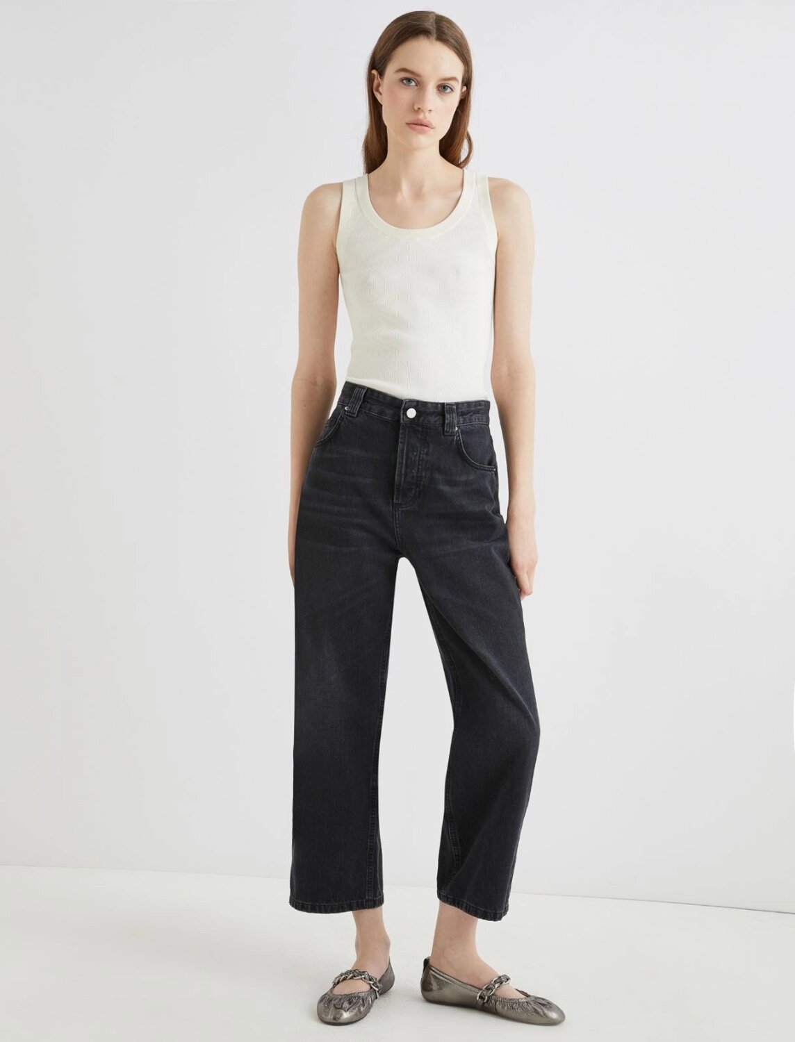 Il lato bon ton del denim, con una nota urbana: nuovo jeans mom fit, sempre confortevole, sempre cool. Da abbinare alla intramontabile marinière per i momenti più rilassati, con slingback e pochette.