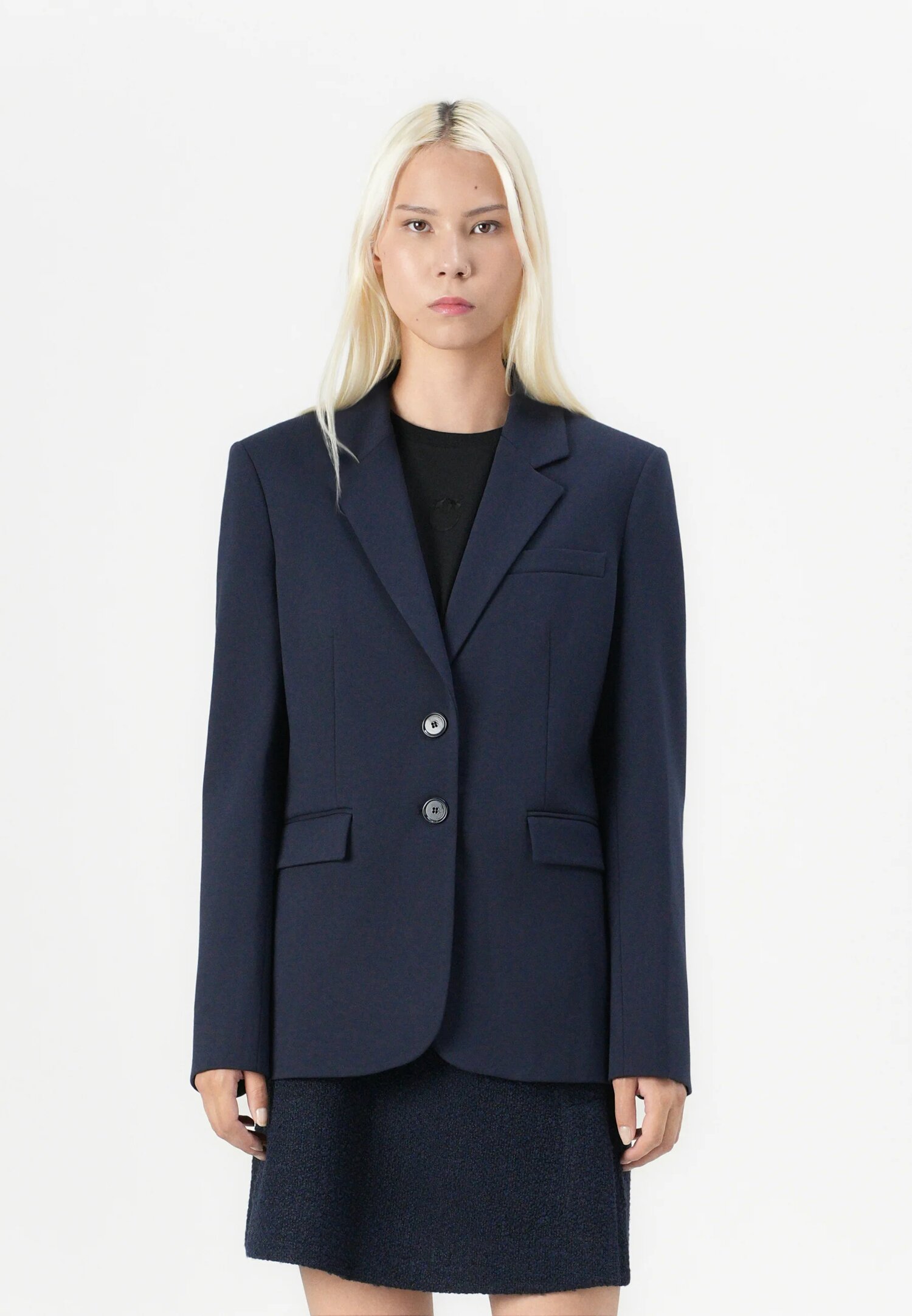 Giacca blazer monopetto realizzata in tessuto tecnico di viscosa stretch lavorata a punto stoffa. Linea leggermente boxy con collo a rever, maniche lunghe con spalle costruite, taschino a filetto e tasche con patta applicata sui fianchi. La giacca è foderata in tessuto e la chiusura monopetto è completata da doppio bottone in tono colore. Il tessuto principale è realizzato con il 67% di viscosa da foreste gestite responsabilmente.