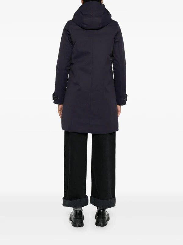 Giacca blu navy ‘Skylar’ di Save The Duck con chiusura frontale con zip nascosta, cappuccio staccabile, tasche laterali, maniche lunghe e polsini regolabili con strap. Realizzata con materiali ad alte prestazioni e completamente animal-free, unisce funzionalità, comfort e un design moderno ed essenziale