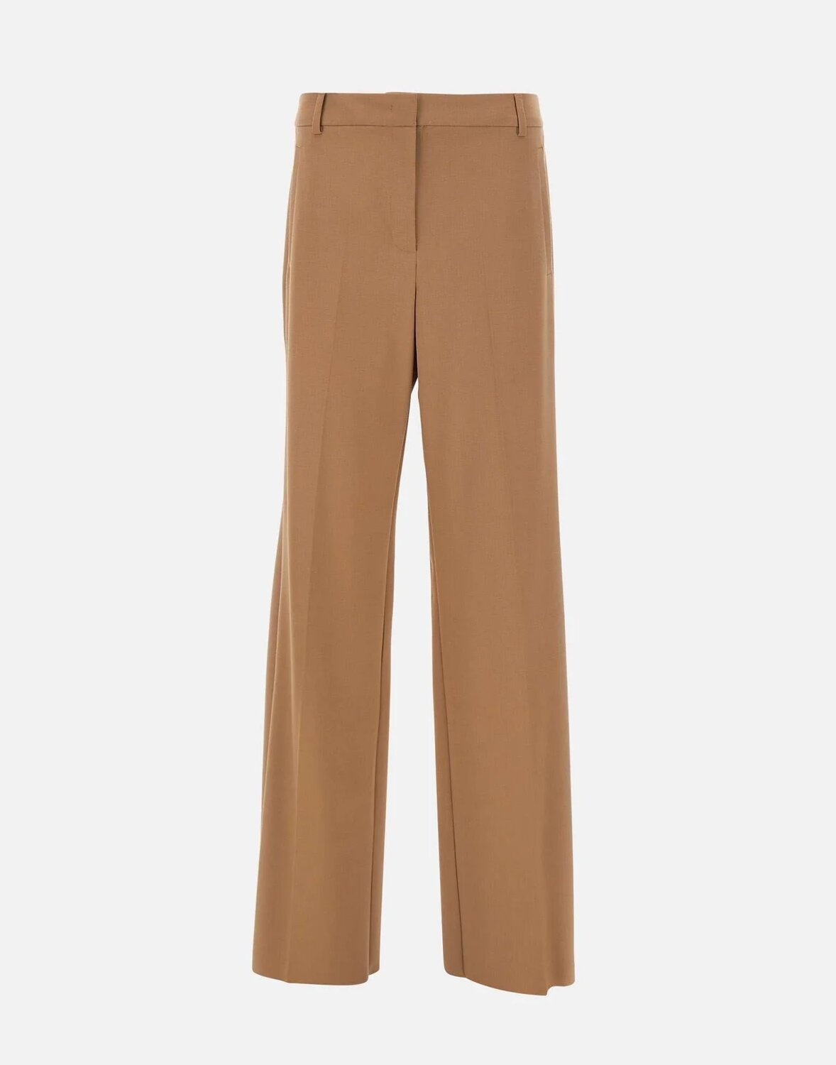 Il pantalone “Tales” firmato Marella. Realizzato in pregiato misto lana vergine nel raffinato tono cammello, presenta una silhouette pulita con passanti per cintura, chiusura frontale con gancio, bottone e zip. Le due tasche laterali a fessura e le due tasche a filetto sul retro aggiungono funzionalità e stile. Un capo versatile perfetto per look da giorno sofisticati.