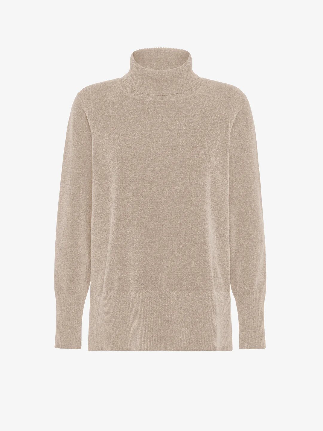 Realizzato in morbida ciniglia lavorata a maglia rasata, questo dolcevita monocromo coniuga eleganza essenziale e comfort avvolgente. Il raffinato taglio a sella sulle spalle dona struttura alla silhouette, mentre gli spacchi laterali aggiungono movimento e versatilità. I polsini e il bordo inferiore, enfatizzati da proporzioni marcate, definiscono il carattere sofisticato del capo. Perfetto da indossare con un pantalone palazzo in Cupro della Collezione, il dolcevita interpreta con naturalezza uno stile urban dallo spirito deciso e contemporaneo.